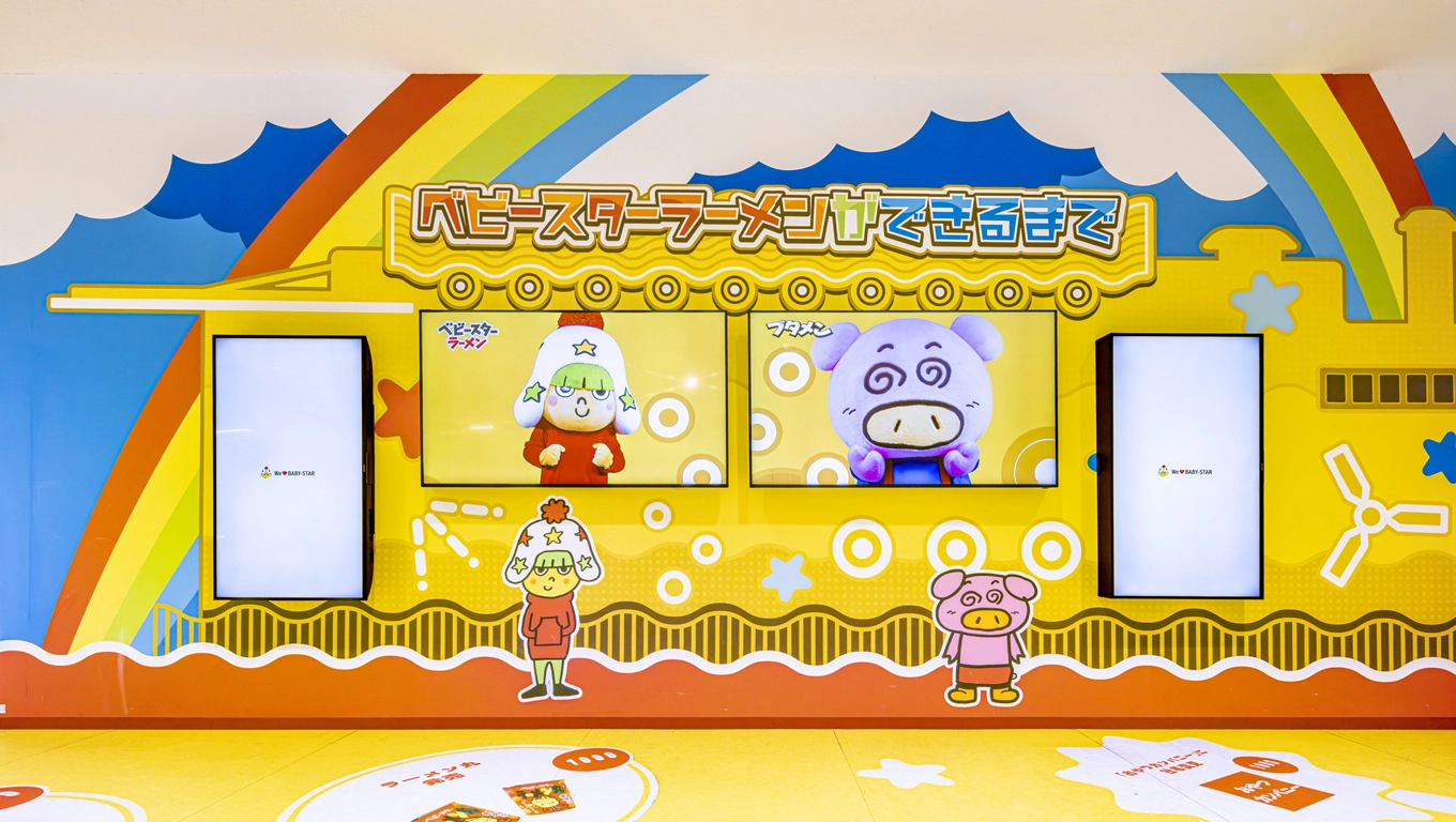 ベビースターラーメンの製造工程と歴史を映像とイラストでご紹介♪ 見て、知って、遊んで、ベビースターラーメンの魅力を体感できる、ベビースターストリートを、ぜひ歩いてみてね!